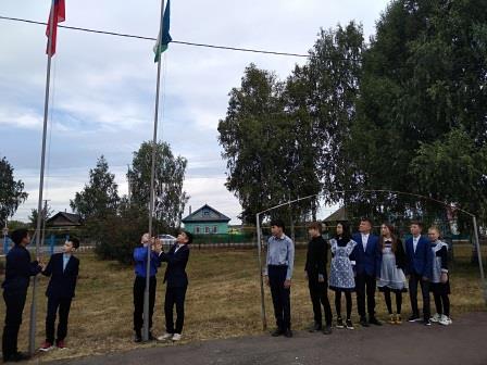Сегодня обучающиеся, учителя школы начали учебную неделю с торжественной церемонии поднятия государственного флага и исполнения гимна.Такая практика способствует формированию чувства патриотизма и гражданственности у подрастающего поколения.