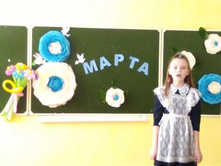 8 марта – самый удивительный, самый нежный праздник весны! И накануне в школе прошло мероприятие, посвященное этому дню. Содержательной и интересной запомнится всем представительницам прекрасной половины человечества концертная программа к празднику, подготовленная обучающимися школы. Добрые слова и пожелания, песни и танцы посвящались в этот праздничный день таким разным и таинственным – прекрасным женщинам. Все номера были посвящены мамам, бабушкам, одноклассницам, педагогам, любви и весне! Приподнятое настроение, лучезарные улыбки, громкие аплодисменты – все это слилось воедино. Большую радость доставили зрителям юные участники концертной программы. С любовью и нежностью были исполнены трогательные песни о маме. Зажигательные танцы никого не оставили равнодушными. Правильно подобранный репертуар праздничного концерта стали единым целым поздравлением с этим замечательным, нежным и весенним праздником. Хочется пожелать всем женщинам доброты и ласки, нежной заботы и больше ясных, солнечных, весенних деньков!