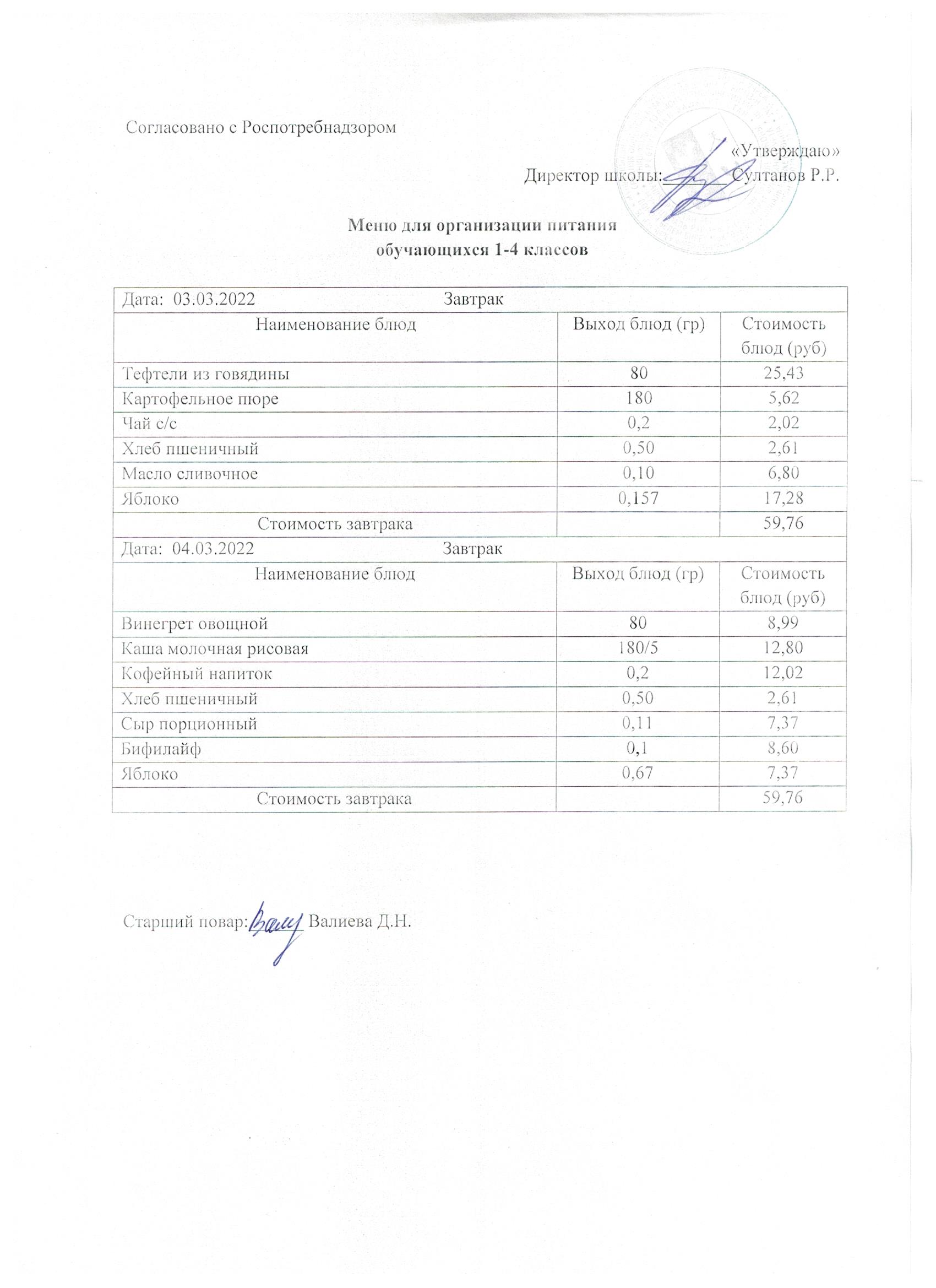 Меню 03.03.-04.03.2022 1-4 кл.