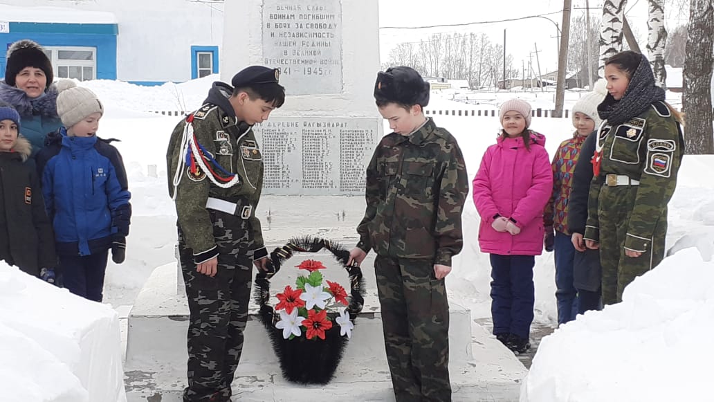 С обучающимися и учителями школы 22 февраля состоялось возложение венков к памятнику-обелиску, павшим в годы Великой Отечественной войны. Собравшиеся отдали дань уважения всем солдатам, не вернувшимся с войны, всем, кто погиб в боях и не дожил до сегодняшнего дня.