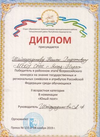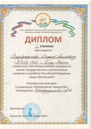 Муниципальное бюджетное среднее общеобразовательное учреждение средняя общеобразовательная школа с. Ялгыз-Нарат муниципального районаТатышлинский район Республики Башкортостан
