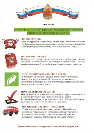 Памятки преподавателям и работникам школы о пожарной безопасности